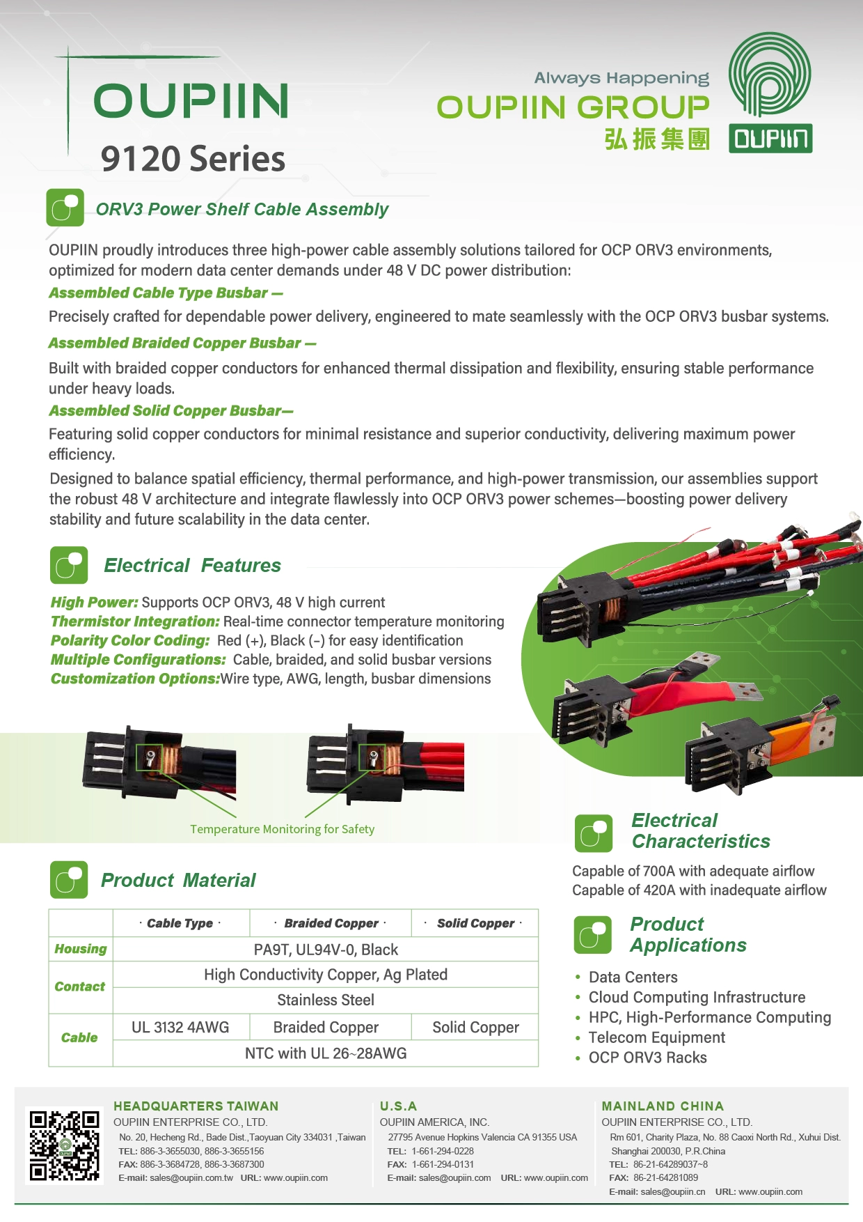 OUPIIN provides expertly engineered High Power Cable Assemblies, designed for servers, data centers, telecom equipment, and industrial applications. Key features include:
